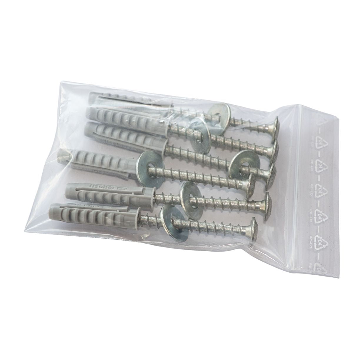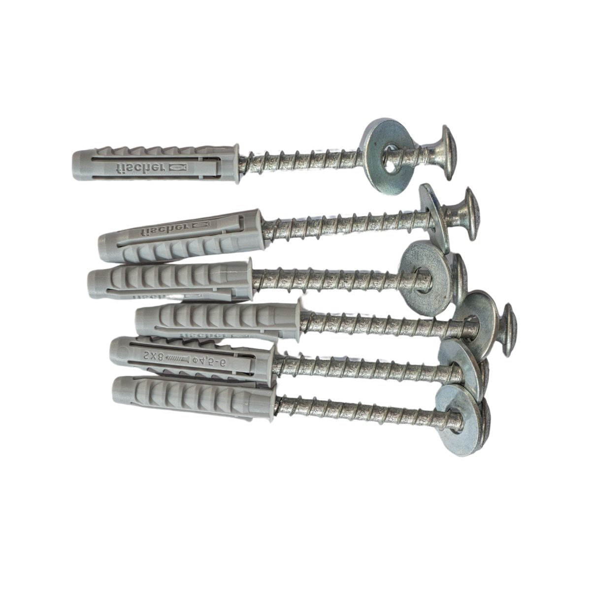 Le viti di fissaggio sono fornite in un set di 6 pezzi per fissare uno STAYBIKE Turning o Fixed. Da utilizzare su pareti in cemento armato, mattoni forati, pietra o legno. Composto da 6 pezzi. Tassello in nylon 8 mm, 6 pz. Rondelle M6 zincate, 6 pz. Viti per legno 6x60 mm. È necessario un foro di diametro 8 mm.